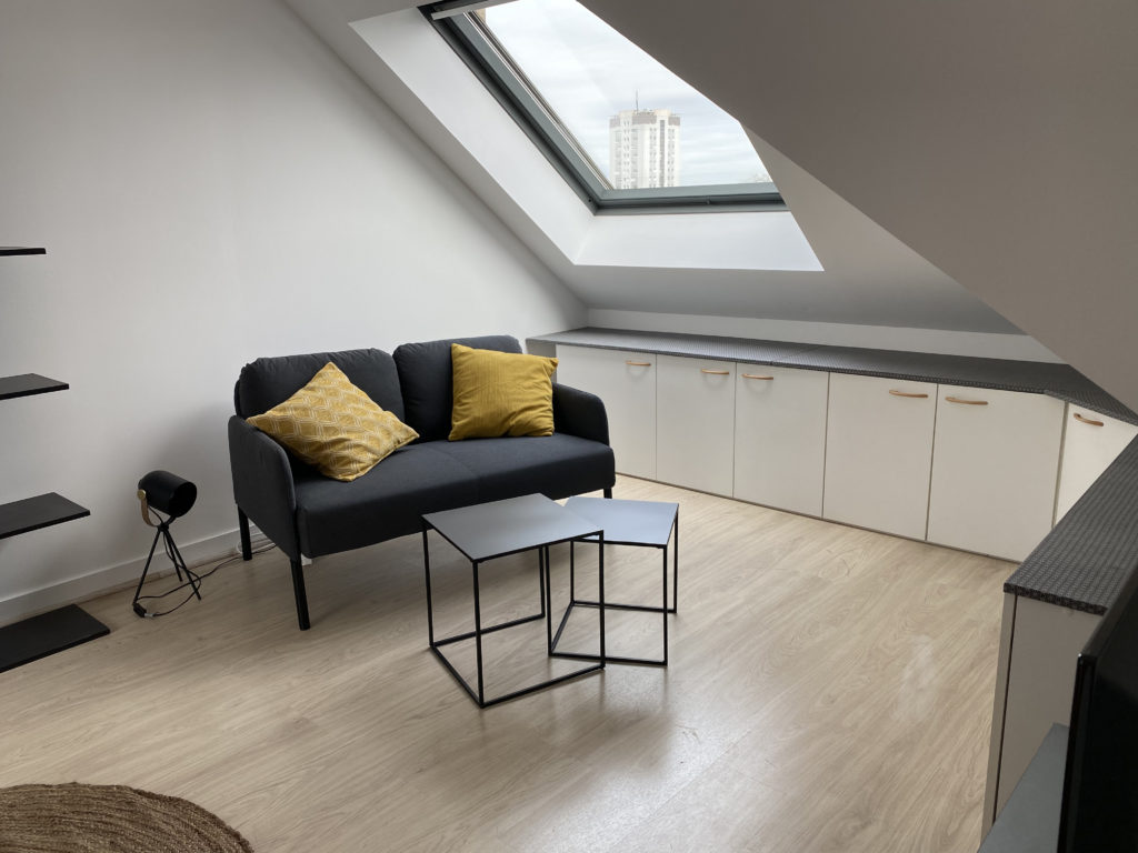 Appartement tout équipé de 38 m2. Vous profitez cependant également de la colocation, donc du jardin, du grand salon et de la cuisine au rez-de-chaussée, ce qui vous permet de rencontrer les autres colocataires, partager de bons moments, tout en conservant une plus grande intimité.